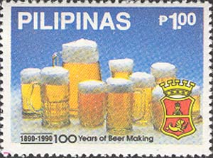 Кружки и стаканы с пивом, эмблема пивоварни San Miguel.