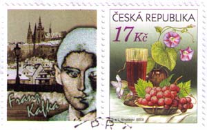 Марка издавалась в малом листе с купонами. На купоне — портрет Франца Кафки и панорама пражского Града.