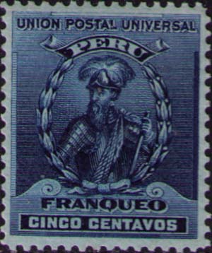 Перу, 1896/1900, 5 c. П. высокая. 12. темно-синяя