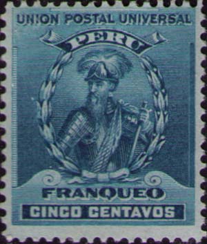 Перу, 1896/1900, 5 c. П. высокая. 12. зелено-синяя