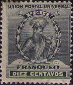 Перу, 1896/1900, 10 c. П. высокая. 12. черная