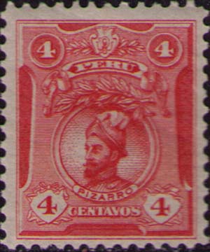 Перу, 1909/1920, 4 c. П. высокая. 12. ярко-красная