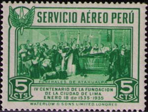 Перу, 1935, 5 c. П. глубокая. 13 (1/2). светло-зеленая