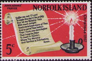 Лист с молитвой Джона Адамса, свеча.