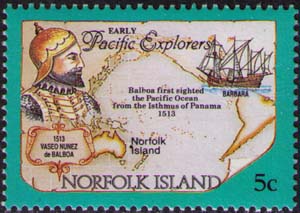 Портрет Васко Нуньеса Бальбоа, карта Тихого океана.