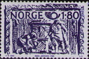 Норвегия, 1980, 1.80 Kr. П. высокая. 13 (1/4). сине-фиолетовая