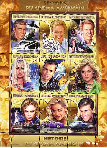 Philatelia.Ru / Пираты. Разбойники. Авантюристы / Марки / Мишель Пфайффер, женщина-кошкаСерия: Звезды кино Мадагаскар, 1999, 2500 fr. П. офсет. 13 (1/4). многоцветная Каталоги: Актриса Мишель Пфайффер, Пфайффер в роли женщины-кошки в фильме «Бэтмен возвращается». Марки серии изданы в малом листе. Сюжеты: «Бэтмен возвращается» |