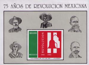 Марка издана в блоке. На поле блока — портреты деятелей революции, в том числе Панчо Вильи.