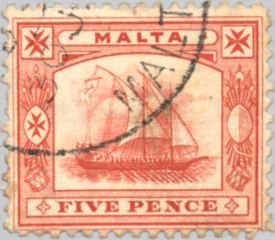 Мальта, 1904, 5 p. П. высокая. 14. коричневато-красная