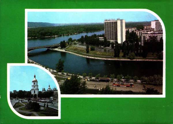 Киев. Вид на Русановский жилой массив. Памятник Богдану Хмельницкому (скульптор Михаил Микешин, архитектор В. Н. Николаев, 1870—1888). 2 сюжета. Фото Р. Якименко.