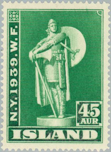 Исландия, 1939, 45 A. П. высокая. 14. темно-изумрудная