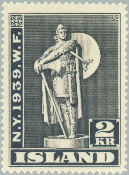 Исландия, 1939, 2 Kr. П. высокая 14. черно-серая