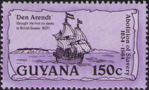 Судно «Den Arendt», доставившее первых шестерых негров-рабов на территорию Британской Гвианы в 1627.
