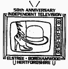 Элстри, Борхамвуд, Хертфордшир. Первый день серии марок М2332/2337. Сапог и котелок на экране телевизора — мотив сериала «Мстители».