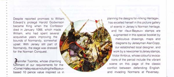 Марки серии оформлены в стиле ковра из Байё. Они также изданы в буклете МН 0-29.