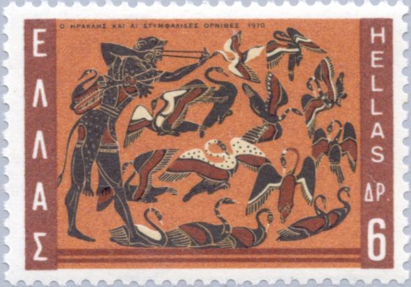 Геракл уничтожает стимфалийских птиц (фрагмент росписи чернофигурной амфоры, середина VI века до н. э., Лондон, Британский музей).