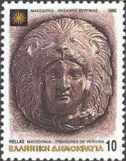 Голова Геракла в шлеме из шкуры льва (рельеф из мцарской могилы в Вергине).