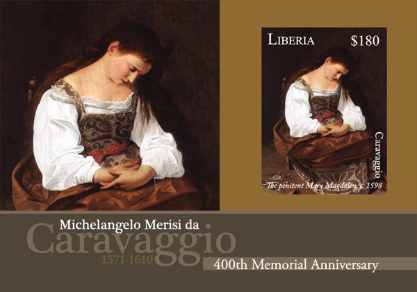 «Кающаяся Магдалина» (Микеланджело Караваджо, около 1593—1594, Рим, Галерея Дория Памфили, фрагмент). На марке указан неточный год создания картины.