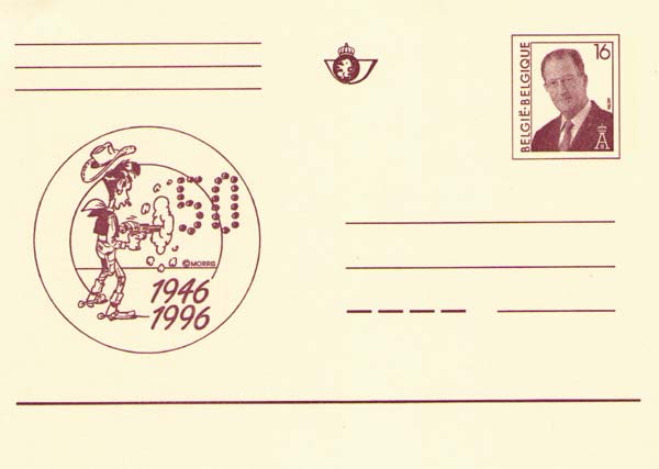 На карточке: Счастливчик Люк «выстреливающий» юбилейное число.