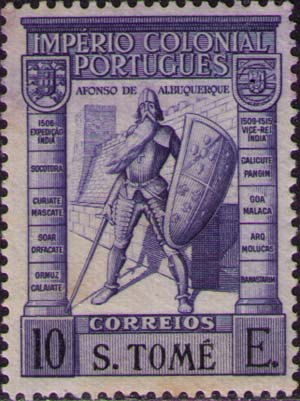 Сан-Томе и Принсипи, 1938, 10 E. П. высокая. 13 (1/2) х 13. фиолетово-синяя и черная