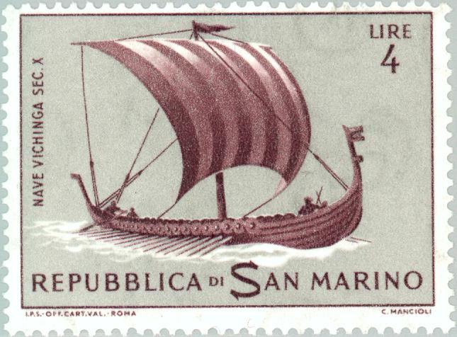 Сан-Марино, 1963, 4 L. П. глубокая. 14. темно-карминно-коричневая и серая