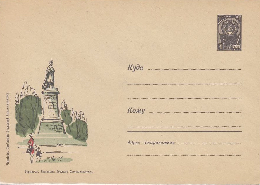Чернигов. Памятник Богдану Хмельницкому (скульпторы Иван Кавалеридзе и и Галина Петрашевич, архитектор Андрей Карнабед, 1956).
