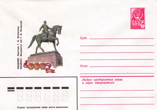 Памятник Григорию Котовскому в Кишиневе (скульпторы Лазарь Дубиновский, И. Г. Першудчев, А. И. Посядо, художник К. Д. Китайка, архитектор Ф. П. Наумов, 1954).