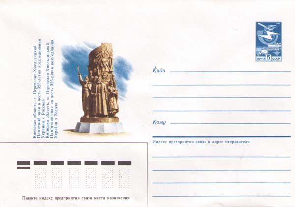 Киевская область, Переяслав-Хмельницкий. Памятный знак в честь воссоединения Украины с Россией. Среди фигур на постаменте — Богдан Хмельницкий и боярин Василий Бутурлин (архитектор Николай Фещенко, скульпторы Ю. Гиричь, Е. Горбань, П. Климушко, 1979).