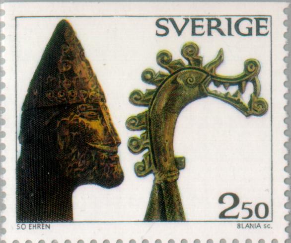 Вырезанная из кости голова воина из Сегтуны и чугунная голова дракона, найденая в Бирке.