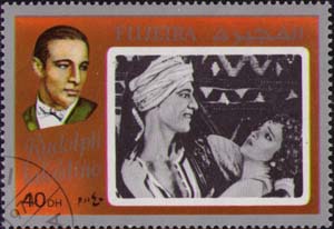 Портрет актера Рудольфа Валентино (1995—1926), Рудольф Валентино в роли шейха Ахмеда Бен Хасана и Агнес Эйрс в роли Дианы Мэйо в фильме «Шейх».
