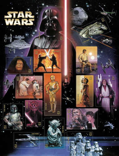 Дарт Вейдер (актер Дэвид Проуз). Космический корабль «Сокол Тысячелетия». Сенатор Палпатин (актер Йан МакДайрмид). Джедай Оби-Ван Каноби (актер Эван МакГрегор) и Анакин Скайуокер (актер Хайден Кристенсен) сражаются на мечах. Люк Скайуокер (актер Марк Хэмилл). Принцесса Лейа (актриса Карри Фишер) и робот R2-D2. Робот С-3PO (актер Энтони Даниелс). Королева Падме Амидала (актриса Натали Портман). Джедай Оби-Ван Каноби (актер Алек Гиннес). Боба Фетт (актер Джереми Буллох). Ситх Дарт Мол (актер Рэй Парк). Хан Соло (актер Харрисон Форд) и Чубакка (актер Питер Майхью). Звездолет. Глава Совета джедаев Йода (актер Фрэнк Оз). Четверо штурмовиков.