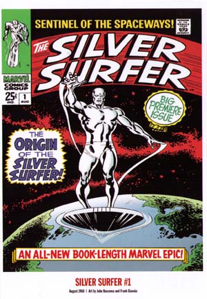 На марке и на карточке: oбложка комикса «The Silver Surfer» № 1.