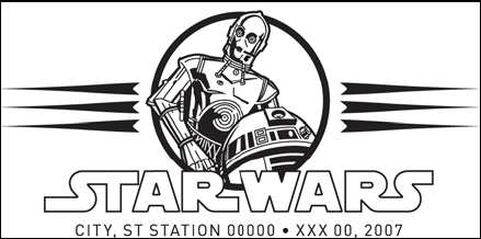 Первый день марко М4212/4226. Роботы R2-D2 и С-3PO (образец штемпеля, применявшегося в разных городах США).