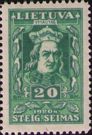 Литва, 1920, 20 Sk. П. высокая. 11 (1/4). светло-зеленая