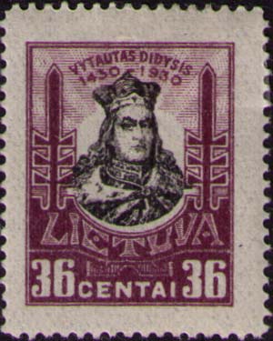 Литва, 1930, 36 c. П. высокая. 14. лиловая и черная