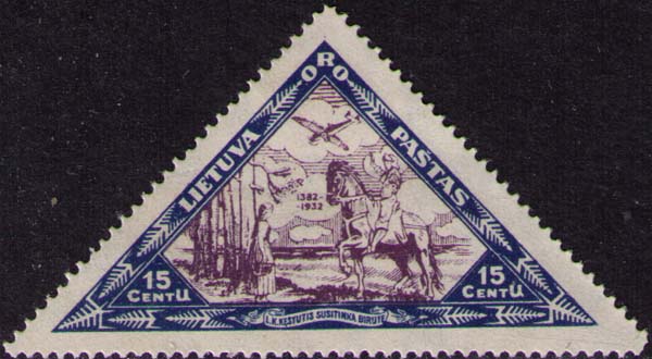 Литва, 1933, 15 c. П. высокая. 14 (1/4) и б/з. синяя и фиолетовая