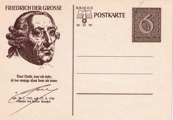 На карточке: портрет Фридриха Великого, факсимиле императора Пруссии.