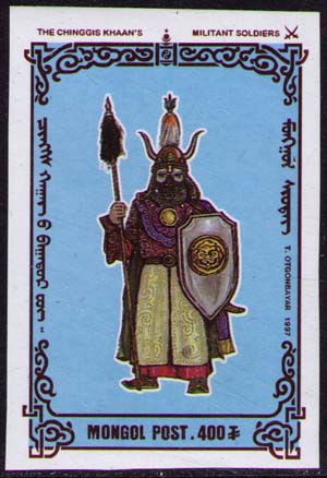 Монгольский воин в рогатом шлеме.