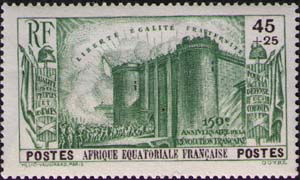 Французская Экваториальная Африка, 1939, 45 c. + 25 c. П. металлография. 13 (1/2) х 13. черная и зеленая