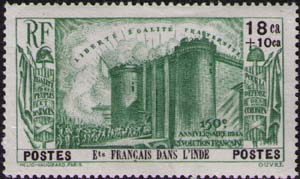 Французская Индия, 1939, 18 Ca. + 10 Ca. П. металлография. 13 (1/2) х 13. черная и зеленая