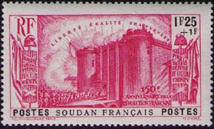 Французский Судан, 1939, 1.25 fr. + 1 fr. П. металлография. 13 (1/2) х 13. черная и красная
