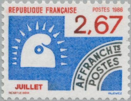 Франция, 1986, 2,67 fr. П. глубокая. 13. красная и синяя