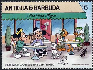 Герои Диснея в уличном кафе на левом берегу Сены.