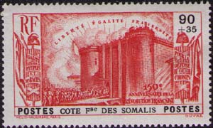 Французский Берег Сомали, 1939, 90 c. + 35 c. П. металлография. 13 (1/2) х 13. черная и красно-оранжевая