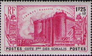 Французский Берег Сомали, 1939, 1.25 fr. + 1 fr. П. металлография. 13 (1/2) х 13. черная и карминная
