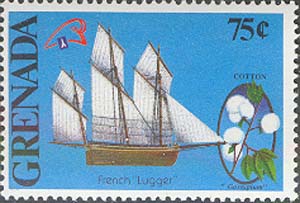 Французский парусный грузовой корабль, хлопок и эмблема выставки.