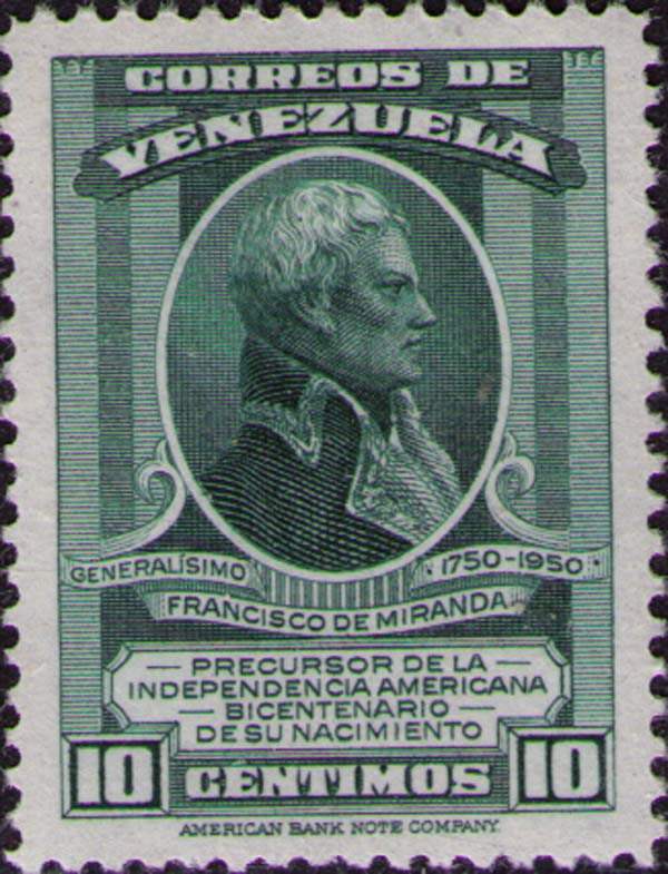 Венесуэла, 1950, 10 c. П. высокая. 12. сине-зеленая