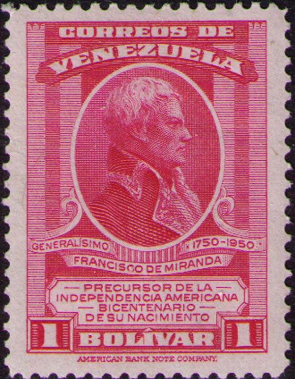 Венесуэла, 1950, 1 B. П. высокая. 12. карминная
