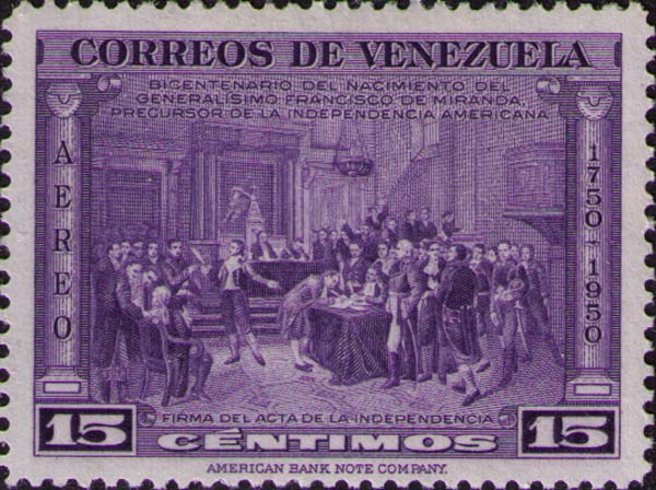 «Подписание акта независимости» (Мартин Товар и Товар (1827—1902). В центре стоит Франсиско Миранда.