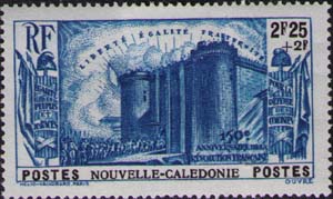 Новая Каледония, 1939, 2.25 fr. + 2 fr. П. металлография. 13 (1/2) х 13. черная и синяя